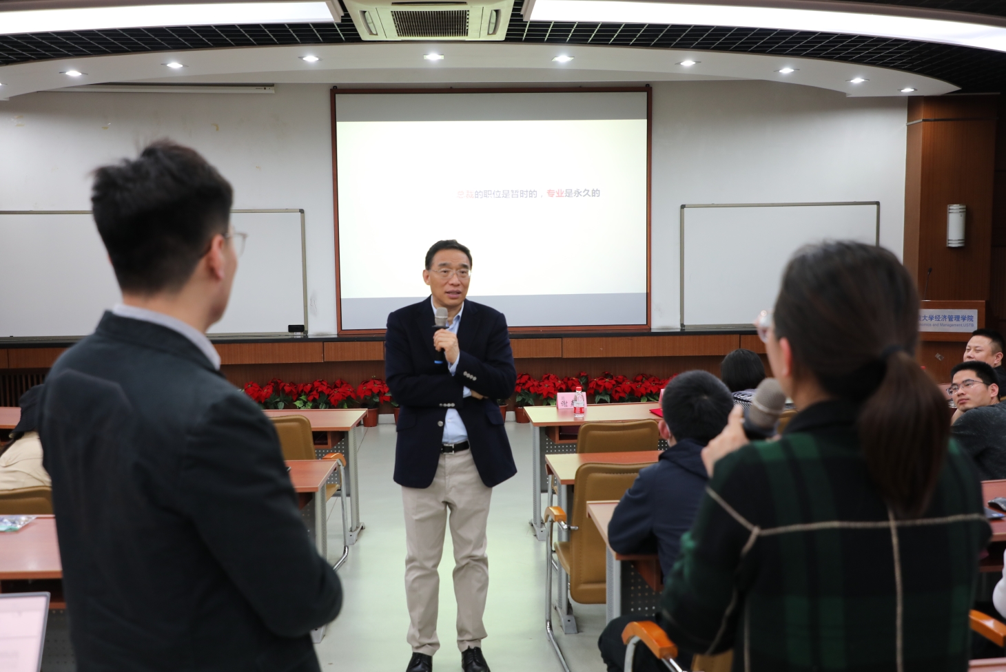谢教授通过清晰的案例和创新的方法,给北科MBA同学们讲授了如何清晰区分人才和其重要意义。同学们对谢教授讲座内容和专业能力高度认可,讲座结束仍感意犹未尽,部分从事企业管理工作的同学来到谢教授身边再次请教。
