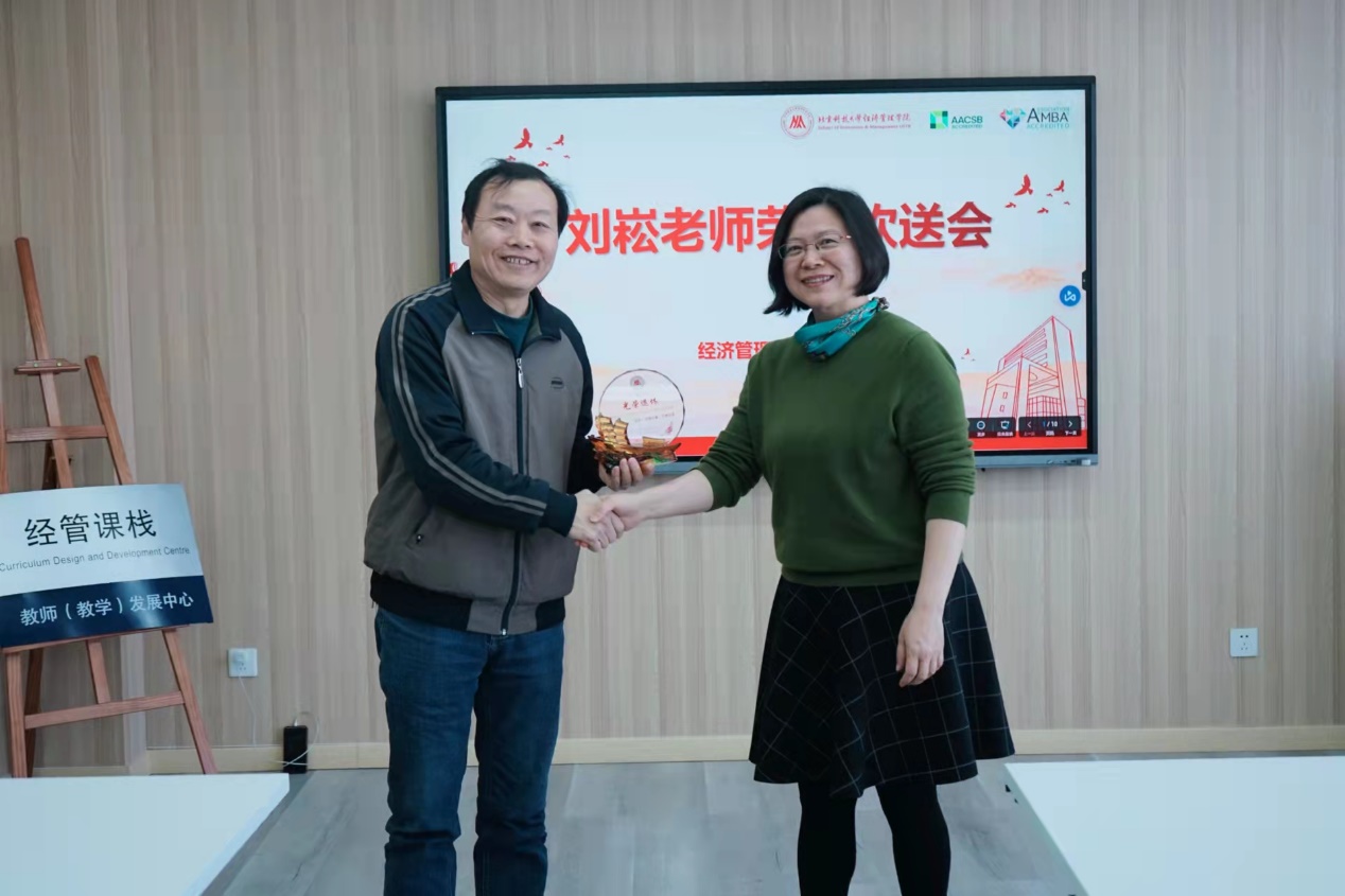 夕阳无限好,晚霞别样红;岁老根弥壮,阳骄叶更浓。2022年3月31日,H片 分工会在经管楼1205室成功举办刘崧老师荣休欢送会。学院党委书记武森,副院长、分工会主席温雅、各系所及部门教师代表共计30余人参加此次荣休欢送仪式。荣休欢送仪式由办公室主任、分工会副主席薄启欣主持。