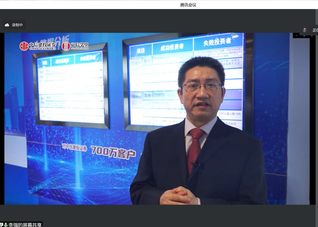 王未卿老师介绍金融工程专业基本情况,阐明金融工程专业认识实习参观重要意义。杨志明老师介绍认识实习参观内容,以及主讲教师情况。中信建投属于头部券商,中信建投投教基地一直以树立理性观念,加强投资保护为己任,开展各类型活动。投教基地坐落在北京市朝阳区安立路上,是北京地区唯一一个国家级(实体)投教基地。投教基地包括历史展示区、产品展示区等,内容丰富多样、有趣十足。本次投教基地线上参观包括两部分内容:第一部分关于投教基地介绍;第二部分关于公司业务介绍。李强总首先带领师生参观投资者教育基地,详细介绍证券起源和发展,并介绍参观各类展区。