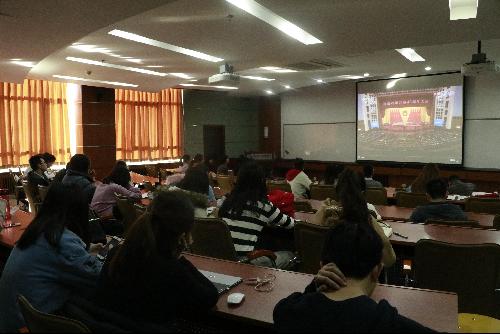 2018年12月18日上午10点,中共中央、国务院在人民大会堂召开庆祝改革开放40周年大会。东凌H片 组织全体班子成员、全体系主任、全体系书记、院办主任、党委秘书和全体学生口辅导员以及各年级学生代表在经管楼312集中收看了大会盛况,聆听了习近平总书记在庆祝大会上所作的重要讲话。