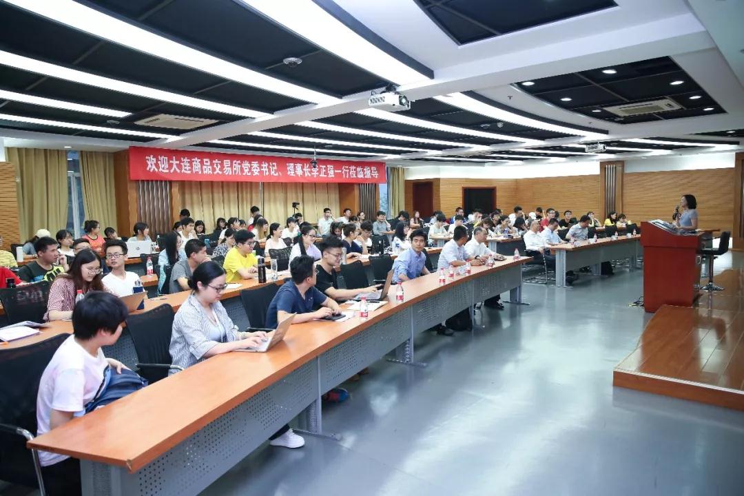会谈后,在经管楼210室,李正强理事长给我校师生带来了一场题为“中国衍生品市场发展与启示”的精彩讲座。大连商品交易所的市场发展部总监蒋巍、北京总部执行副主任何欣、会员服务部执行经理张立,国元期货有限公司总经理马华轩、研究咨询部经理张健,学院本科生教学办公室主任赵西爱,学院金融和大数据领域的部分教师,以及八十多名学生参加了讲座。讲座由范小华副院长主持。