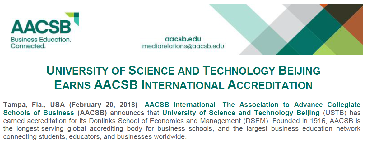 成为大陆地区第19家,北京第5家通过AACSB认证的大学。