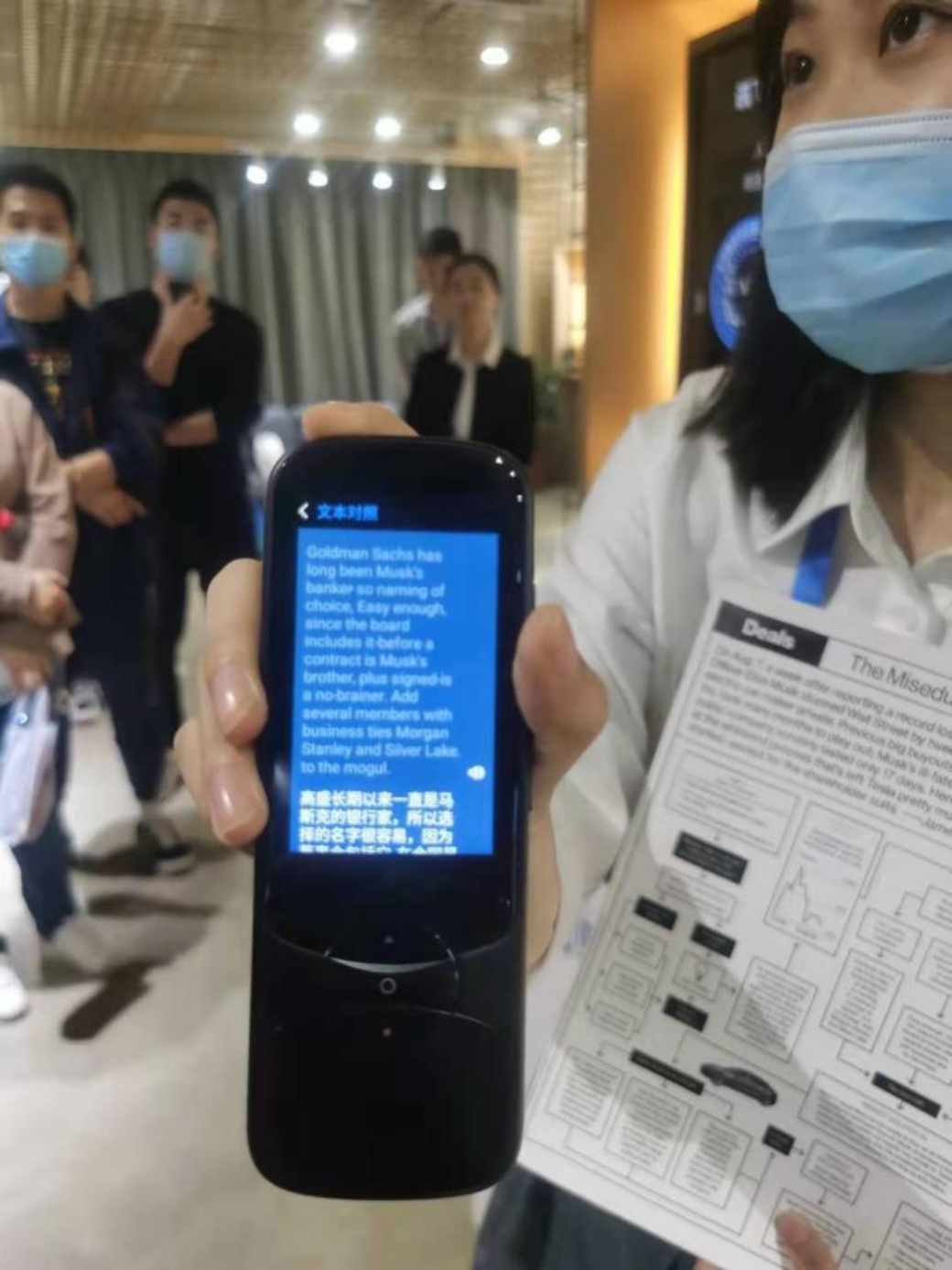 在人工智能厅参观时,向导为我们演示了公司软件的翻译功能。