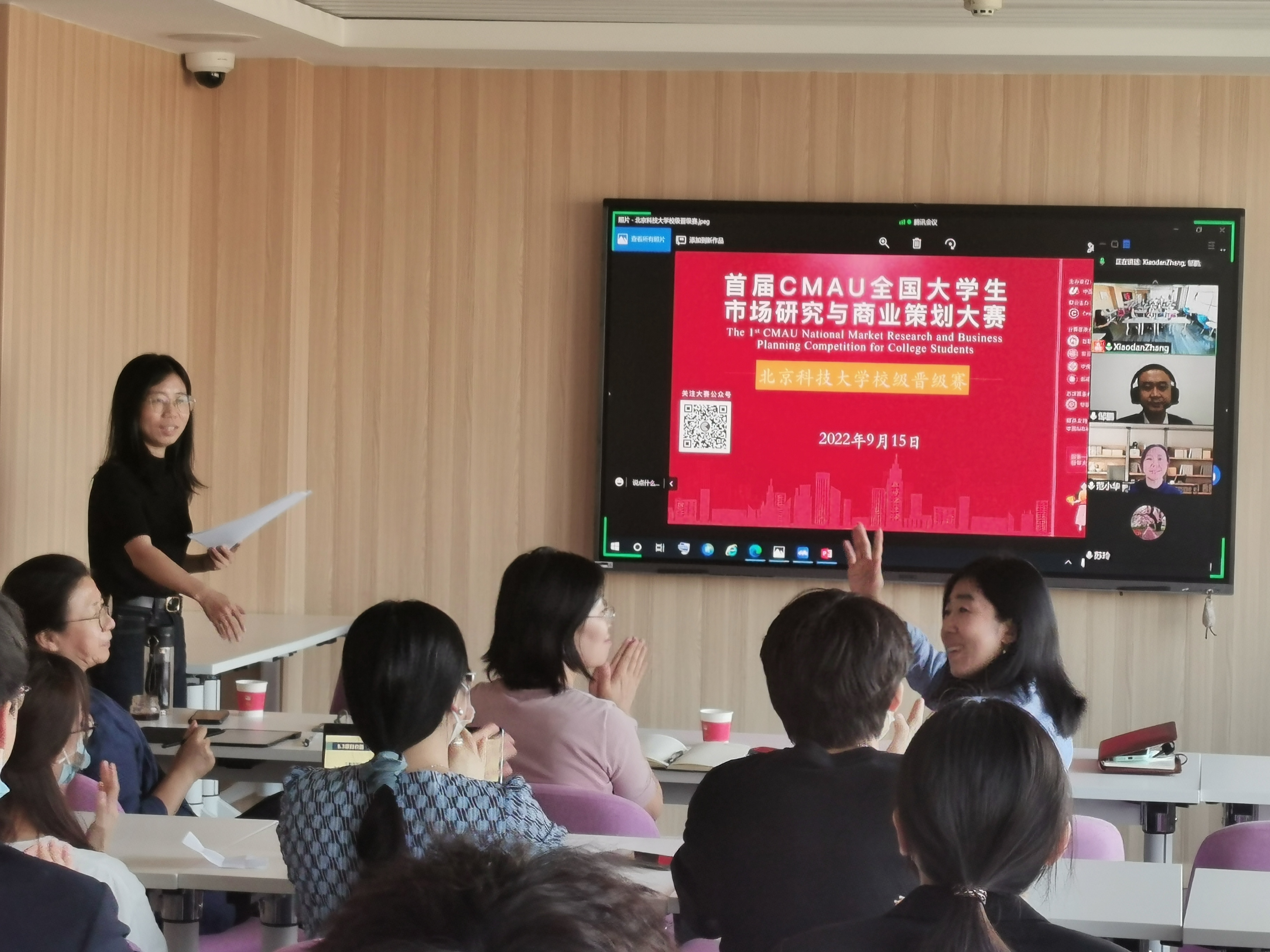 9月15日,由中国高校市场学研究会(CMAU)和Credamo见数科技公司主办,H片 工商管理系承办的首届CMAU全国大学生市场研究与商业策划大赛H片 校级选拔赛举行。本次比赛以线上线下相结合的形式进行,H片 副院长范小华和工商管理系主任张剑出席本次活动并致辞发言。工商管理系老师胡玲、苏玲、姚卿、邹鹏担任评委,张晓丹老师主持。