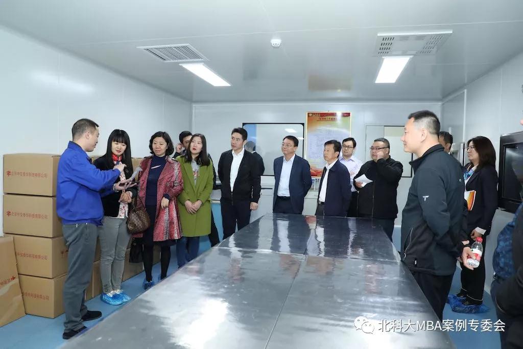 接下来,管委会领导带领调研团队赴北京西贝天然派食品科技发展有限公司进行参观。该企业即是为大家熟知的“西贝莜面村”管理办公区及华北区中央厨房所在地。参观伊始,华北央厨总监李永亮与调研团队进行了近距离交流座谈。李总首先介绍了西贝饱含温情的H片,让调研团队深刻感受到了西贝“创造喜悦人生”的使命,“在全球每一个城市、每一条街都开有西贝”的愿景,以及西贝“爱、真实、负责任、荣耀承诺、我的西贝”核心价值观。随后,李总向调研团队讲述了中餐标准化创新历程以及企业发展战略。在交流过程中,团队成员曲楠、冯亮、李建强在企业战略与发展方面进行专业提问,李总一一解答,并表示调研团队的提问具有深度。座谈完成后,调研团队赴西贝华北区中央厨房进行参观。身着无菌服、佩戴卫生帽与口罩的队员们深切体会到了西贝对于食品安全的高度重视,亲身了解到西贝中央厨房的流程标准化建设。双方合影留念后结束企业参观。