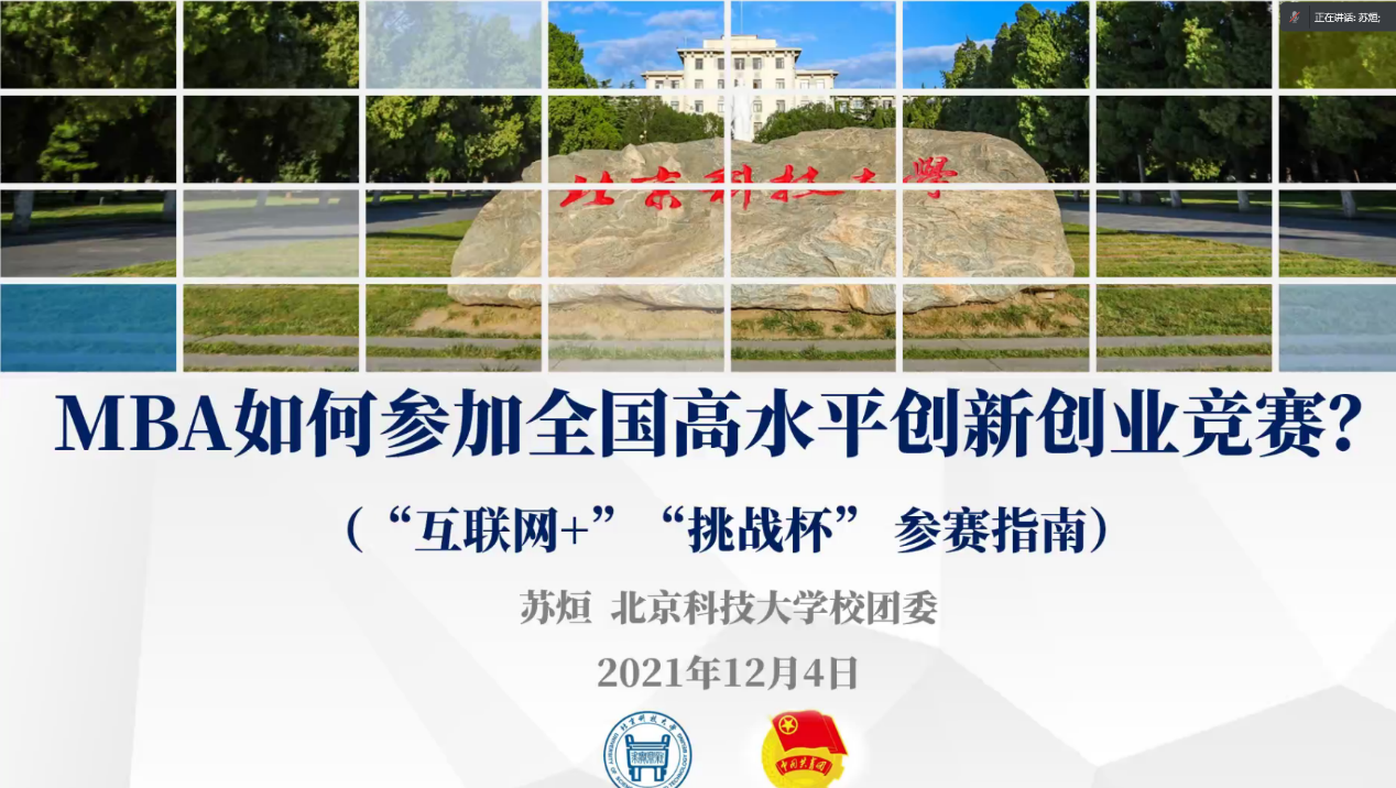 2021年12月4日晚,由H片 专硕中心主办的“创新创业三大赛事”权威解读活动通过腾讯会议线上平台成功举办,学院创新创业辅导员戈誉阳作为讲座主持人,邀请了H片 校团委副书记苏烜老师对竞赛政策进行了专业解读,2018级MBA校友肖祥应分享了MBA参赛经验和创业经历,孟子居创业团队创始人、负责人杨国庆作为获奖团队代表分享了参赛心得。专硕中心王琛老师、陈欢老师以及近70名专硕同学共同参会。一个半小时的解读,为参会同学诠释了什么是创新创业三大赛、为什么三大赛含金量如此之高、参赛带来的众多收获,极大提高了同学们参赛热情。