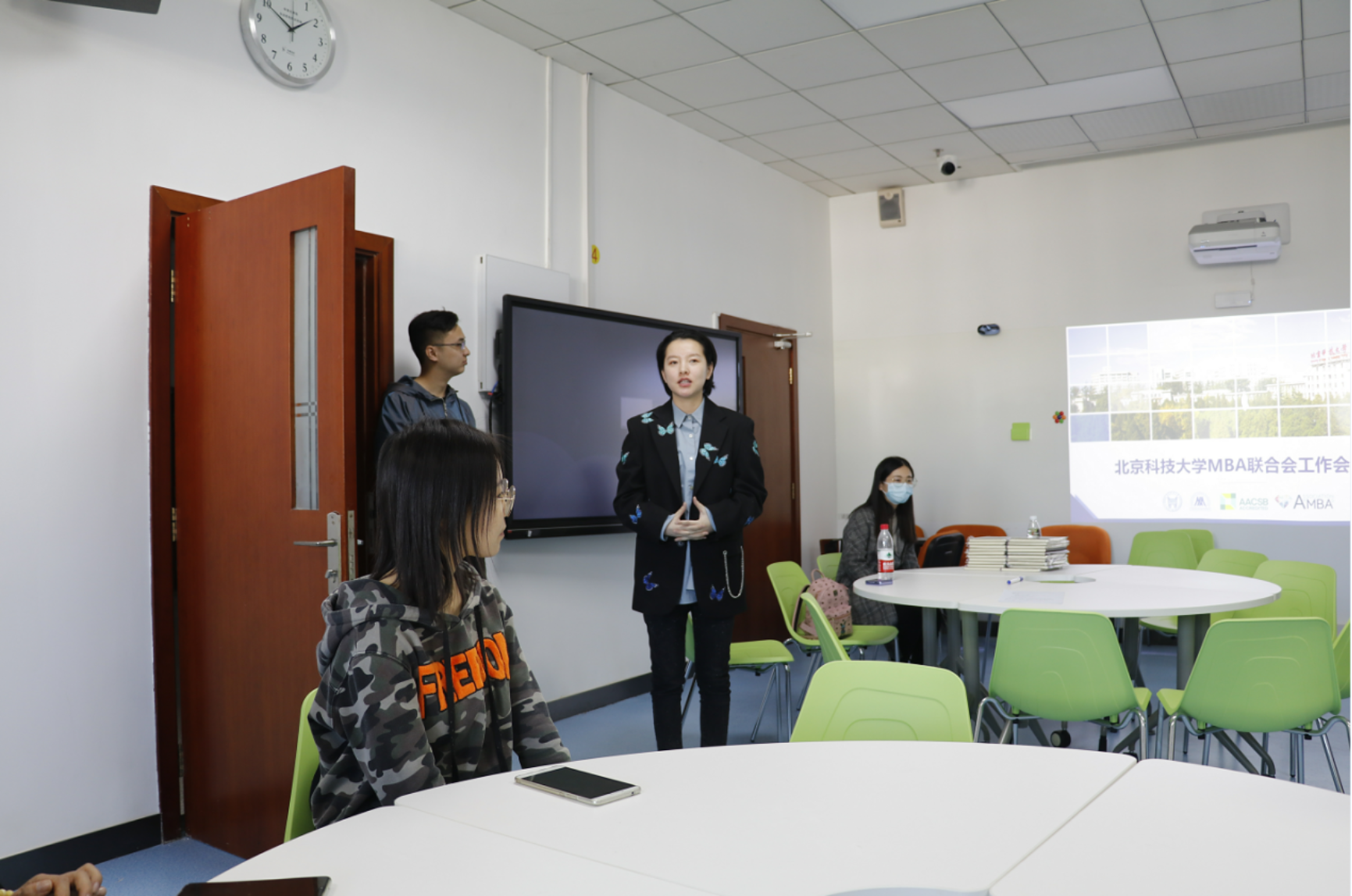 2020年10月16日中午,经管楼404内座无虚席气氛紧张而又热烈,专硕中心老师,MBA联合会新老成员以及各班班委齐聚一堂共同参与由MBA联合会主办的“MBA联合会新成员见面会”。会议由第21届MBA联合会秘书长李怡晨主持。