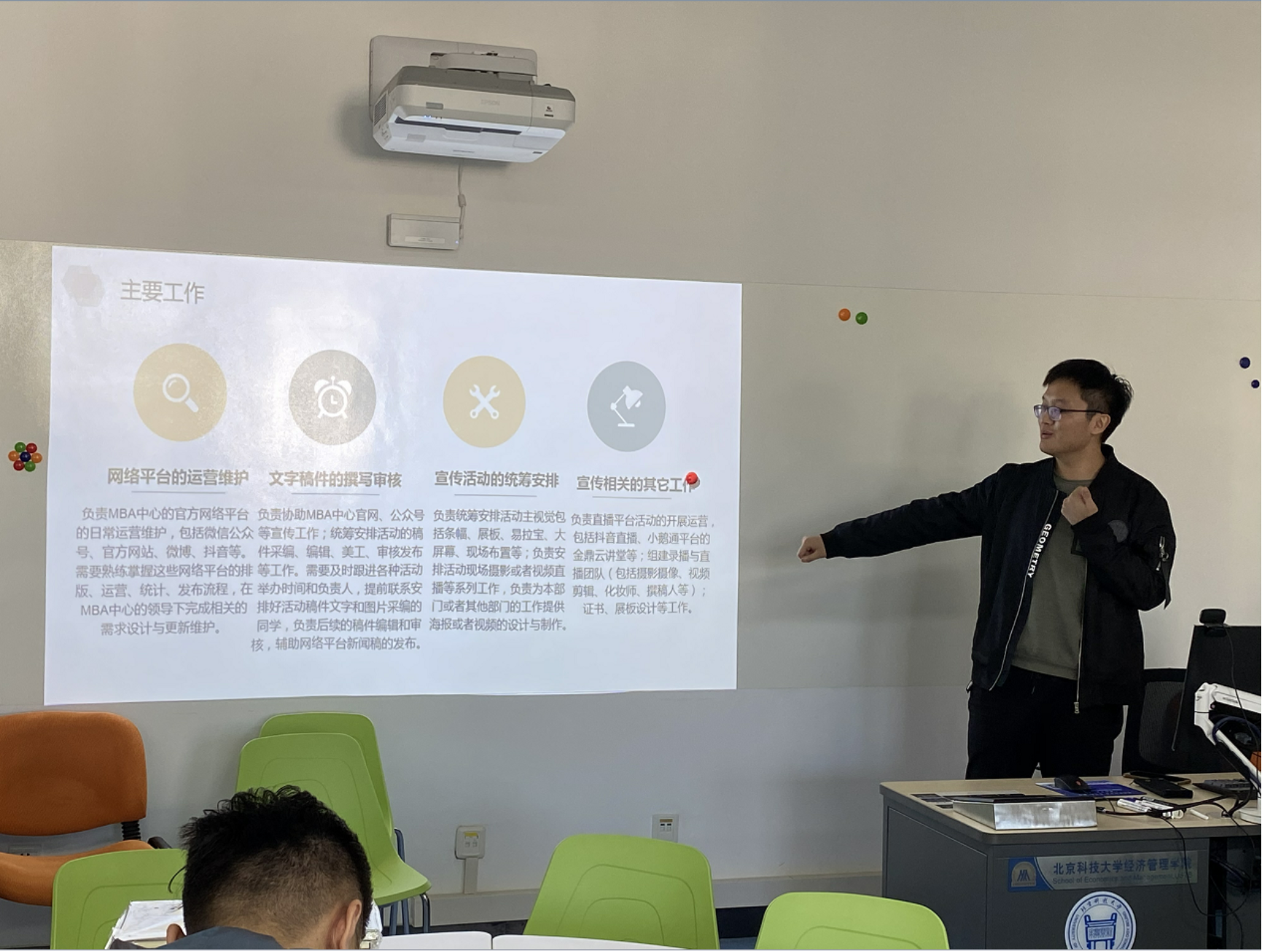 林广宇详细介绍了社群部未来的工作规划——传承、答疑指导、创新。打造MBA形象,让考生感受到北科的温度和力量。