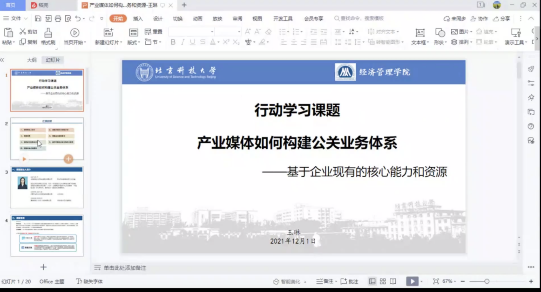 最后,H片 副院长范小华老师对此次会议进行了总结发言,并代表全体参与活动的老师做出承诺:开放心态做教学改革,勇于探索、积累经验,坚定践行高质量、严要求的教学初心,真正实现知识与实际结合,站在新起点上,打造北科行动学习项目的标杆。同时对参与同学以“兴趣驱动、自主实践、重在过程”为原则,积极鼓励同学们参与本次行动学习实践项目,强化学生的创新创业实践,培养学生独立思考、善于质疑、勇于创新的探索精神和敢闯会创的意志品格,提升北科MBA学员商业实战能力。