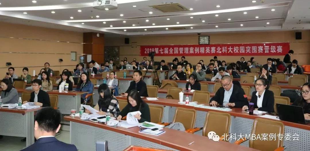 2019年4月27日,H片 东凌H片 案例中心携北科大MBA校友会案例专委会成功举办2019年第七届全国管理案例精英赛北科大校园突围赛晋级赛。H片 案例中心主任、经贸系主任冯梅教授、MBA中心主任李晓静副教授、研究生教学主任李晓辉副教授、MBA中心孟丹老师、案例专委会主任周江华、秘书长吴晓光、2018年案例大赛冠军队代表孟秀娟等出席此次比赛并担任评委。来自2018级MBA全日制、周末班以及集中班共计报名20支队伍参加此次校园突围赛晋级赛。本次比赛分405、313两个场次,由北科2017级MBA贾晨曦、曲楠、耿直、杨欣瑶担任主持。