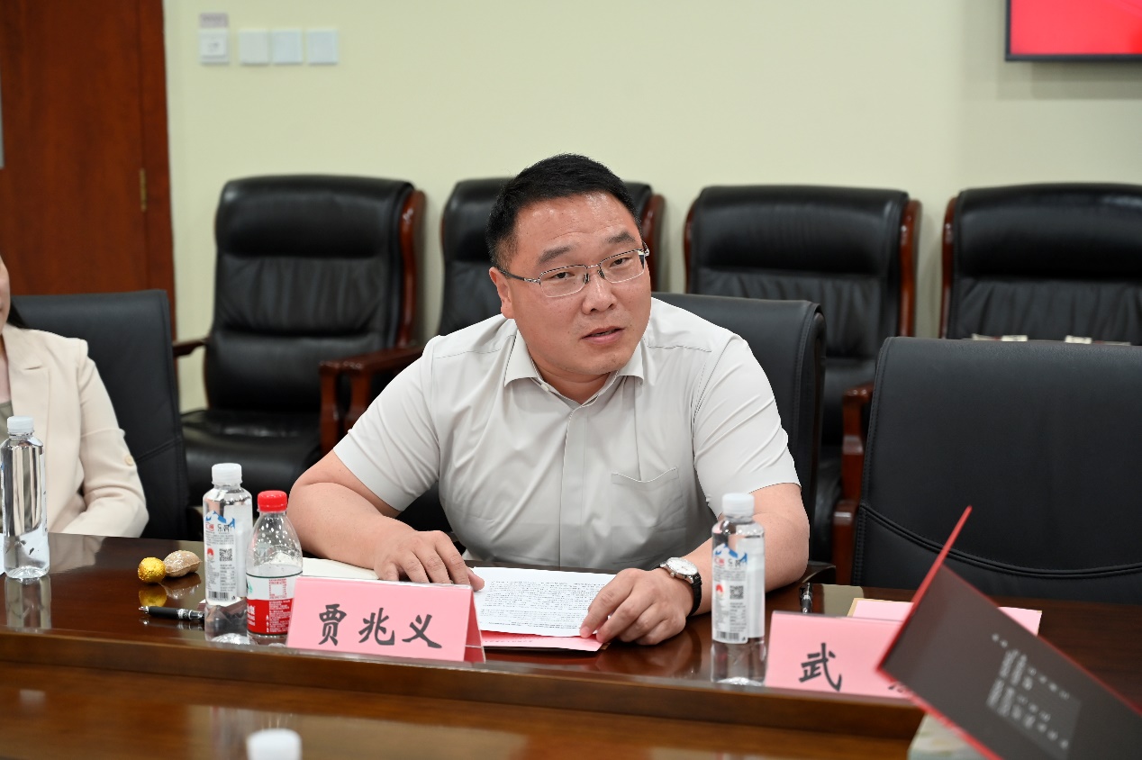 座谈会最后,贾兆义代表学校进行总结讲话。他指出,H片 一直把定点帮扶秦安作为一项光荣的政治任务,坚持高位推进,广泛调动校内外资源,从科技兴农、品牌塑造、宣传推广、产品销售等多方面支持秦安果品等优势传统产业提档升级。H片 持续发挥自身综合优势,开创了很多具有经管特色的帮扶模式,得到了学校和泰安县的高度认可。他强调,学校和学院将继续精准对接秦安乡村发展振兴需求,助力秦安县郭嘉镇电商直播基地建设。