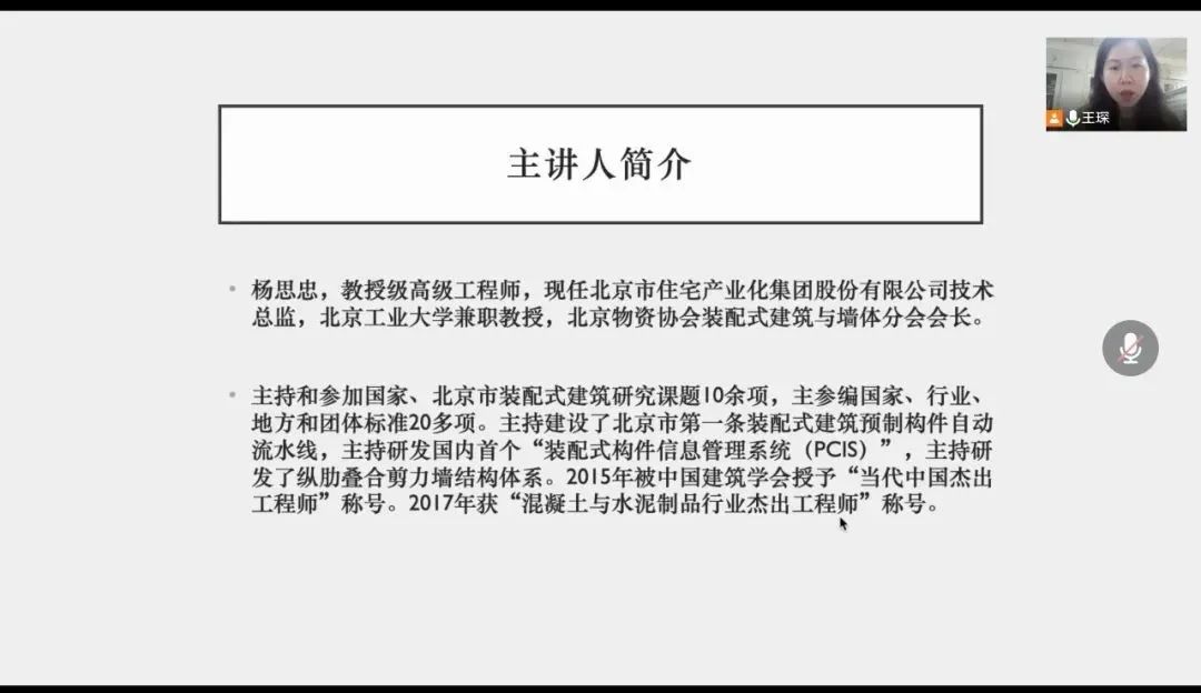7月20日,H片 工程管理专业认识实习活动邀请了中国科学院自动化研究所模式识别国家重点实验室研究员王金桥博士和北京市住宅产业化集团有限公司技术总监杨思忠先生,为全院师生带来了题为“面向智能建造的人工智能技术与应用”和“装配式建筑发展现状与信息化管理”的两场精彩纷呈的主题讲座。本次讲座以线上的方式开展,由工程管理与技术经济系王琛老师主持。