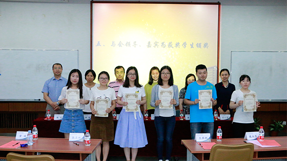 工商管理系副教授黄瑛以及获得孙富奖学金、校友基金、明天助学金的同学们。会议由温雅主持。