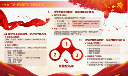 将精神之“钙”摄入理想信念。她注重党员过程培养和先锋模范作用发挥,引领青年大学生筑牢信仰之基。作为党建负责人,她坚持“全程全链条”制度建设、“全局全方位”发挥作用,2022年以来开展各类党日活动近300次。她带领学生党支部与北京儿童医院开展红色“1+1”联合共建活动,四年来支部多次赴北京儿童医院及保定分院肿瘤外科、康复科等部门开展志愿服务,累计组织各类活动200余次,陪伴肿瘤患儿300余名,服务时长共计800余小时。共建活动获得北京市红色“1+1”二等奖,得到新华网等媒体宣传报道,阅读量超55万,累计获得30万元无偿捐赠专项共建基金,党支部入选“全国高校党建工作样板支部”培育创建单位。