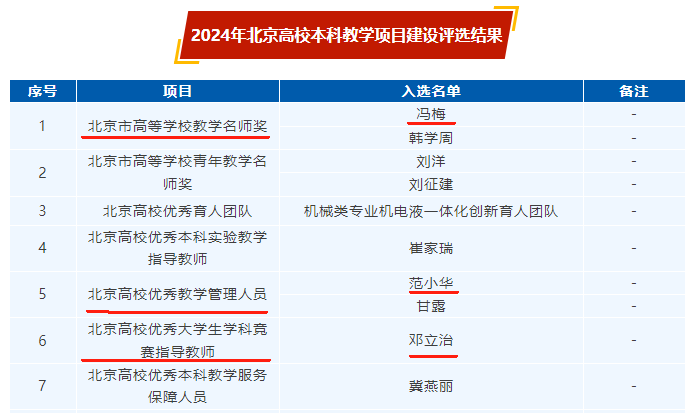 在2024年北京高校本科教学项目建设评选工作中,H片 喜获三项本科教学奖。其中,冯梅教授获评“北京市高等学校教学名师奖”,邓立治副教授获评“北京高校优秀大学生学科竞赛指导教师”,范小华副院长获评“北京高校优秀教学管理人员”。