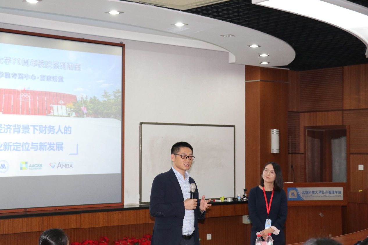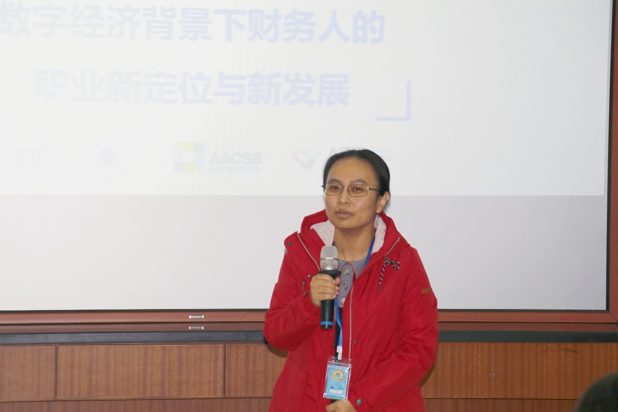 财务会计系寇明婷教授对本场讲座进行了总结发言,提出了我们作为北科大研究生,职业目标应该放在更远的位置上,要努力成为会计行业的高端人才。一是树立强基础,具有良好的职业道德,完整的知识结构,保持身体健康。二是实现软实力和硬实力兼并,掌握逻辑思维和分析能力,加强沟通和协调能力,努力成为能创造性解决问题的复合型人才。