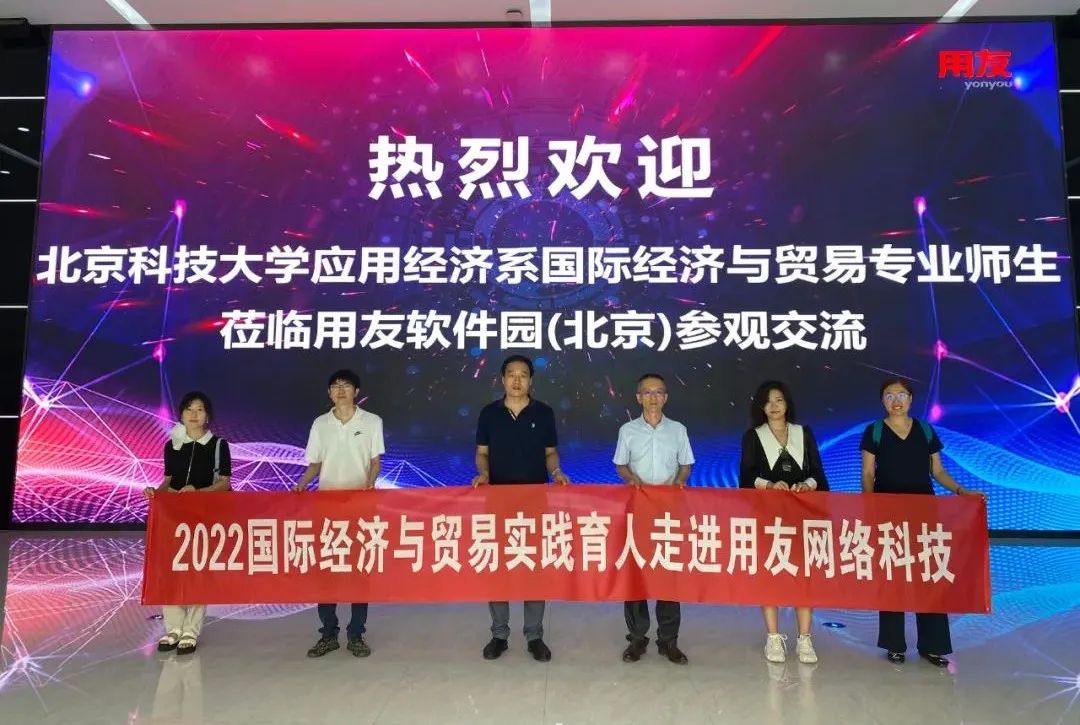 7月20日,H片 应用经济系国际经济与贸易专业实践育人活动以线上线下相结合的方式走进用友网络科技股份有限公司,参观了用友数智企业馆。用友是全球领先的企业云服务与软件提供商,致力于用创想与技术推动商业和社会进步。此次参观的数智企业馆是我国第一家真正展现数智化全貌的综合型、融合化、生态式数智企业体验中心,是用友对过去32年企业服务方面的经验总结和对未来企业服务的展望。本次认识实习暨实践育人活动采用“线下引领+线上协同”的形式,由应用经济系副主任马建峰副教授带领应用经济系俞峰老师、李侨敏老师以及学生代表哈嘉雯、尹胜辉实地参加,由应用经济系王凯副教授带领国贸20级全体学生一起在线同步参加了此次活动,会计等专业的学生也在线上观摩,线上人数共计百余人。