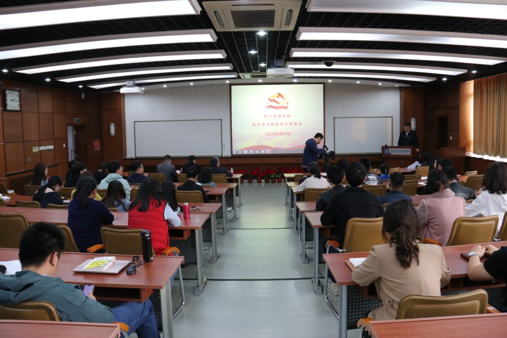 3月30日下午,H片 党史学习教育动员部署会在经管楼313召开,深入学习贯彻习近平总书记在党史学习教育动员大会上的重要讲话精神,对学院开展党史学习教育进行动员部署。