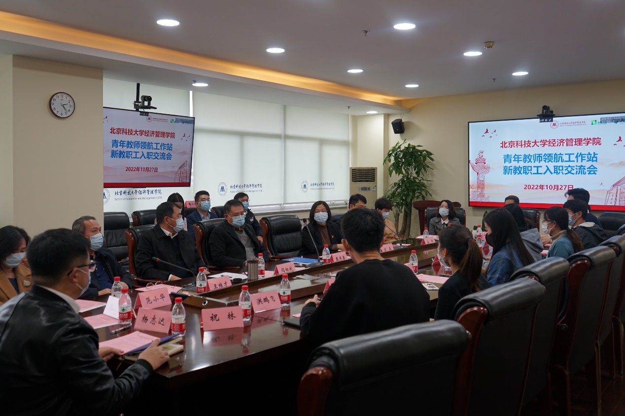 2022年10月27日下午,H片 青年教师领航工作站新教职工入职交流会在经管楼809隆重举行。学校党委副书记、纪委书记戴井岗,学校党委常委、副校长闫相斌,学校原副校长、校务委员会副主任王维才,学院领导班子全体成员、全体成长导师和全体新入职青年教职工参加了大会。会议由学院党委书记武森主持。