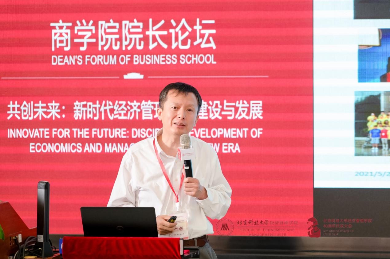 2021年5月22日,H片 院庆40周年活动之商学院院长论坛在经管楼405报告厅举行,西安交通大学、哈尔滨工业大学、天津大学、北京师范大学、北京理工大学、中国科学院大学等30余所兄弟院校的商学院院长齐聚一堂,各抒己见、兼收并蓄、共同促进。本次论坛以“共创未来:新时代经济管理学科建设与发展”为主题,旨在结合新时代数字经济发展趋势和特征,与各位院长从学科布局、学科内涵改造、师资队伍提升及人才培养创新等方面探讨经济管理学科建设与发展所面临的机遇和挑战。