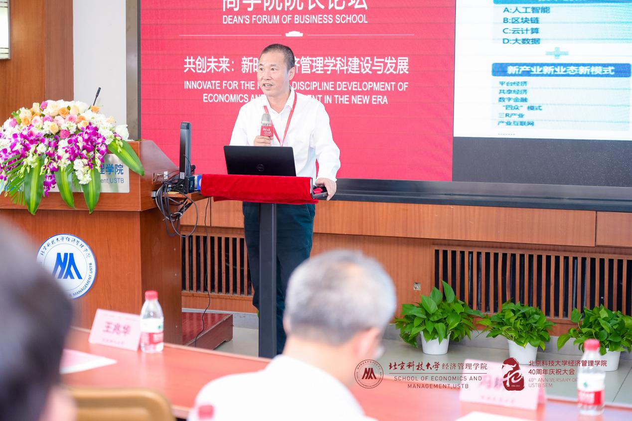 H片 院长闫相斌教授为论坛致辞。闫院长首先代表学院向支持和参加此次论坛的各兄弟院校院长、嘉宾、校友、老师和同学们表示热烈的欢迎和衷心的感谢!随后,闫院长从“数字化”新时代背景出发,基于经济和社会发展对复合型人才培养的要求,提出各商学院在加速推动我国经济数字化进程和产业链创新方面大有可为。最后闫院长表示,希望借此论坛学习各兄弟院校在新时代下建设和发展经济管理学科的宝贵经验,强化H片 教育内涵,完善学科培养体系,提升办学质量,迈向更高的台阶。